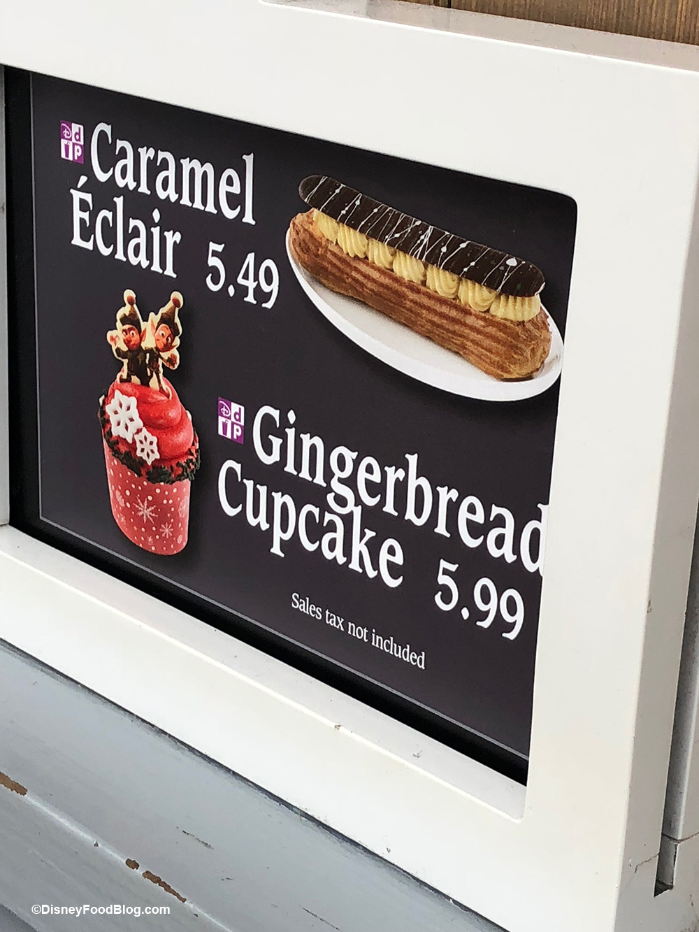 Dockside Diner has some new Flurry of Fun Eats. The Caramel Eclair, filled with a caramel filling, is available here along with that red Prep and Landing Gingerbread Cupcake. A Peppermint Milkshake should be added to menu soon as the seasonal milkshake.