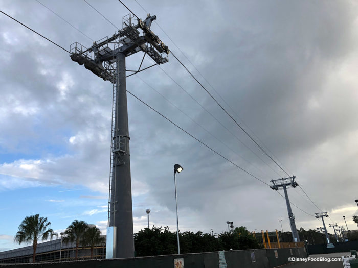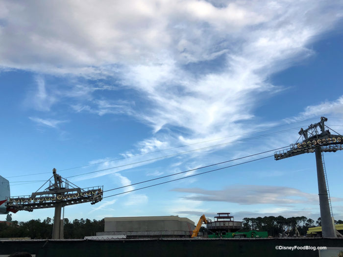 We’ve been watching the progress of the Skyliner Station at this park every week. Now in addition to the steady progress, we got to see Cables are threaded for the Skyliner System for the first time!