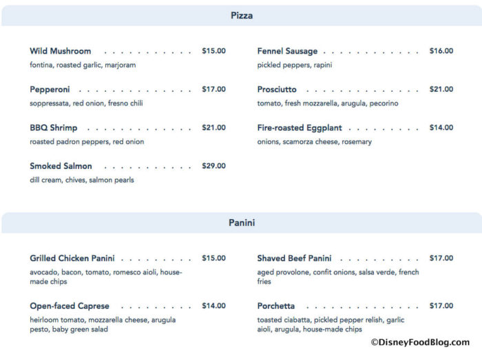At the time of publishing this post, lunch and dinner menus appear to be the same on the Disney World website, starting with To Share for the Whole Table — which includes Roasted Meatballs — and Appetizers and Salads featuring Tempura Calamari & Shrimp and Grilled Tandoori Chicken Wings.
