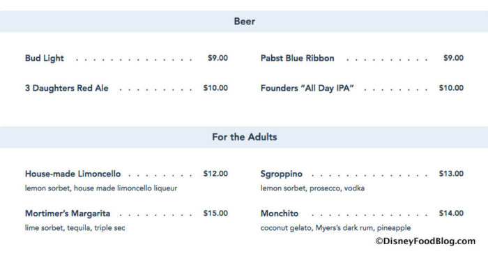 There is also a Beer listing and more “For the Adults” selections including House-made Limoncello.