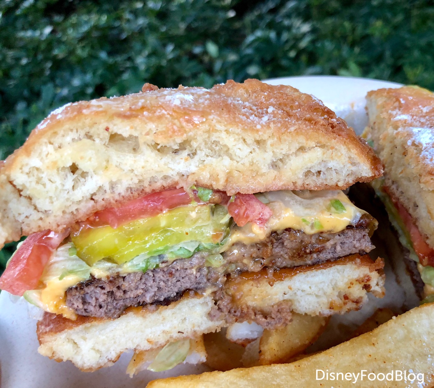 Debuting today at Port Orleans French Quarter’s Sassagoula Floatworks food court in Disney World is a sweet-meets-savory entree that seems like the perfect combo: the Beignet Burger.
