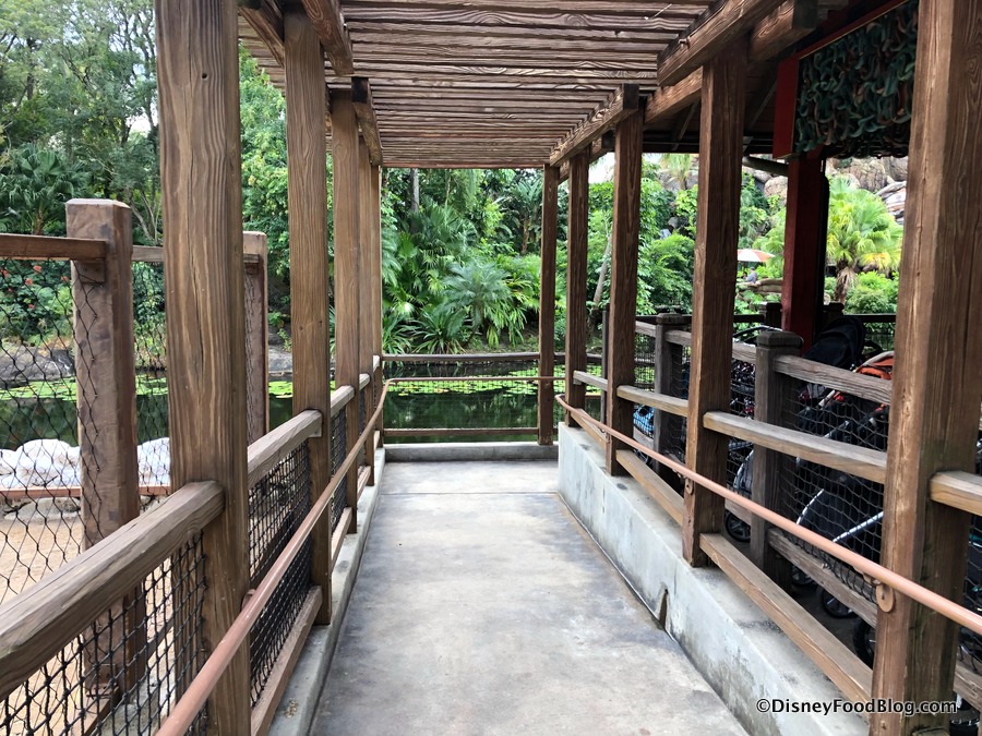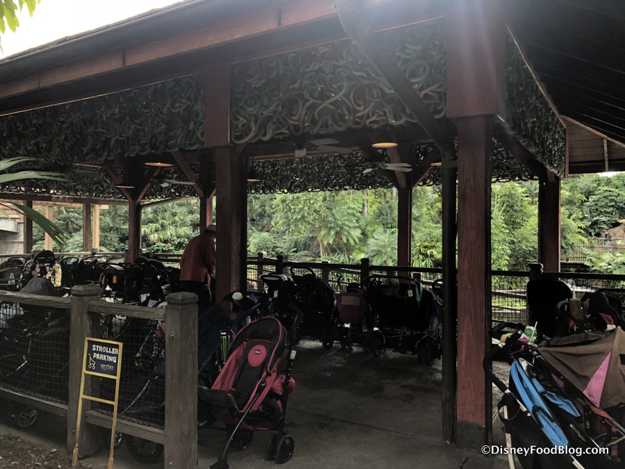 What was once a spot a while back to meet and greet Baloo and King Louie is now a stroller parking area complete with a ramp.