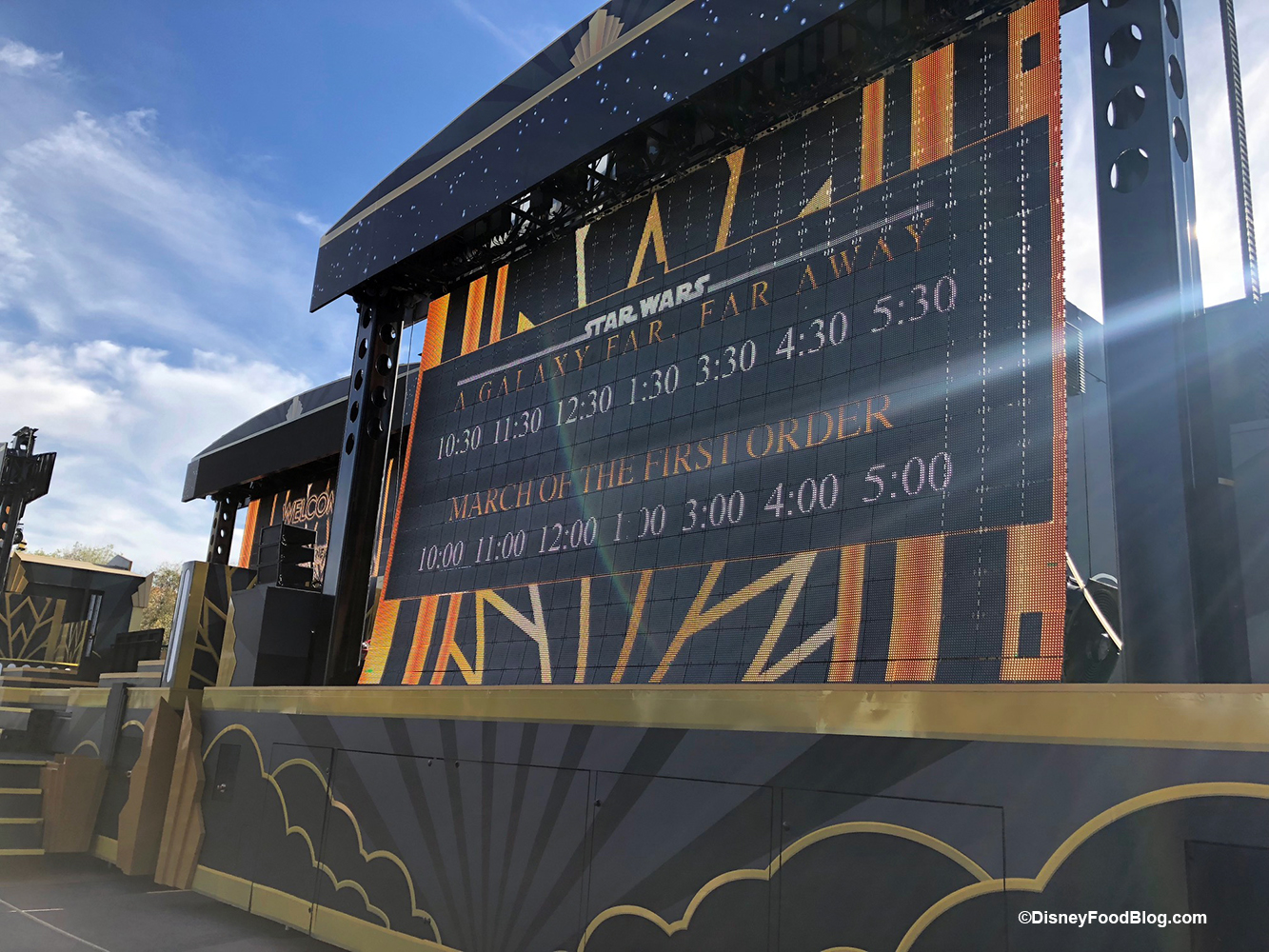 Finally! Star Wars fans rejoice! The stage show A Galaxy Far, Far Away is back! After monitoring weeks of refurbishment work in the stage area we were glad to see the stage back when we were in Hollywood Studios today.