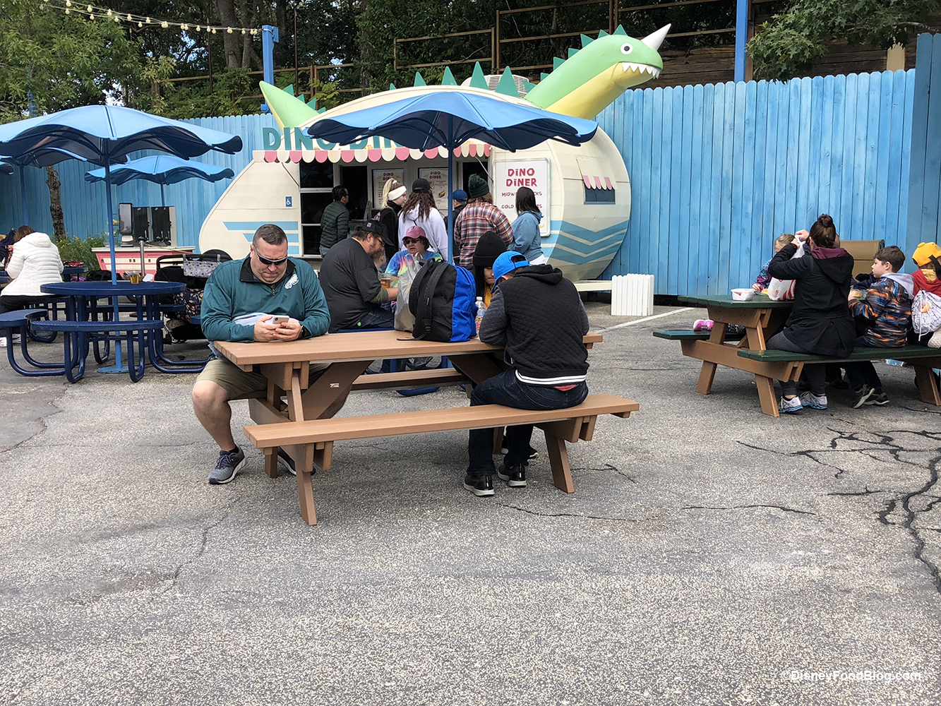 If you’re an IPA Beer fan, you can now find Old Elephant Foot IPA at Dino Diner, Dino Bite Snacks, and Trilo Bites! And now you can enjoy your eats and drinks while sitting on some of the added picnic tables we saw around Dinoland.