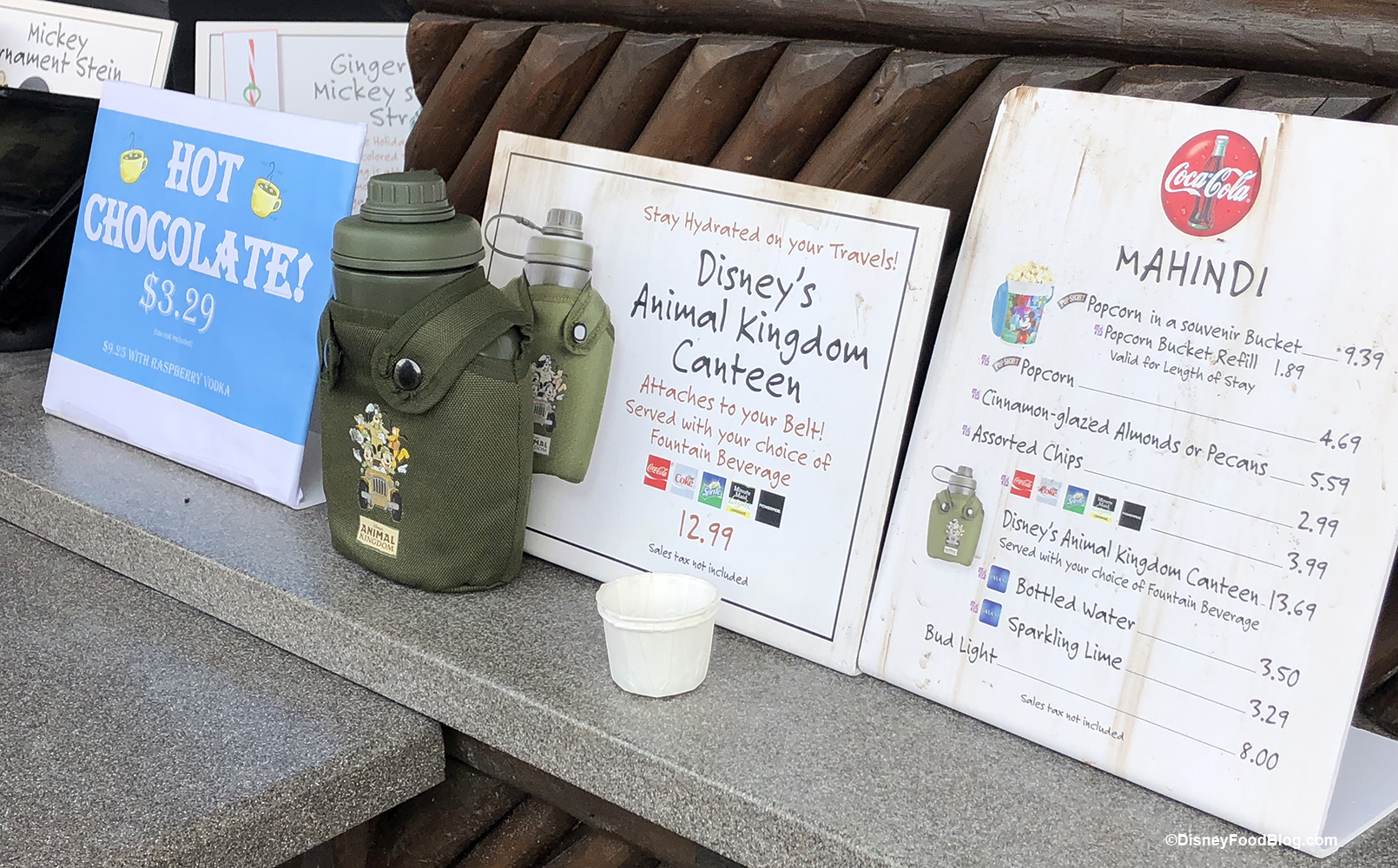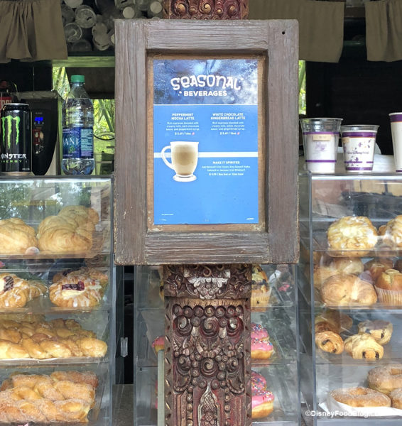If you’re looking for the snowman stein or gingerbread Mickey straw for your drink, head to Mahindi where you’ll find all of these — plus the return of the Animal Kingdom Drink Canteen. The Canteen wasn’t available when the holiday items first came out, but it is back now. Also, hot chocolate is available!