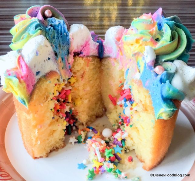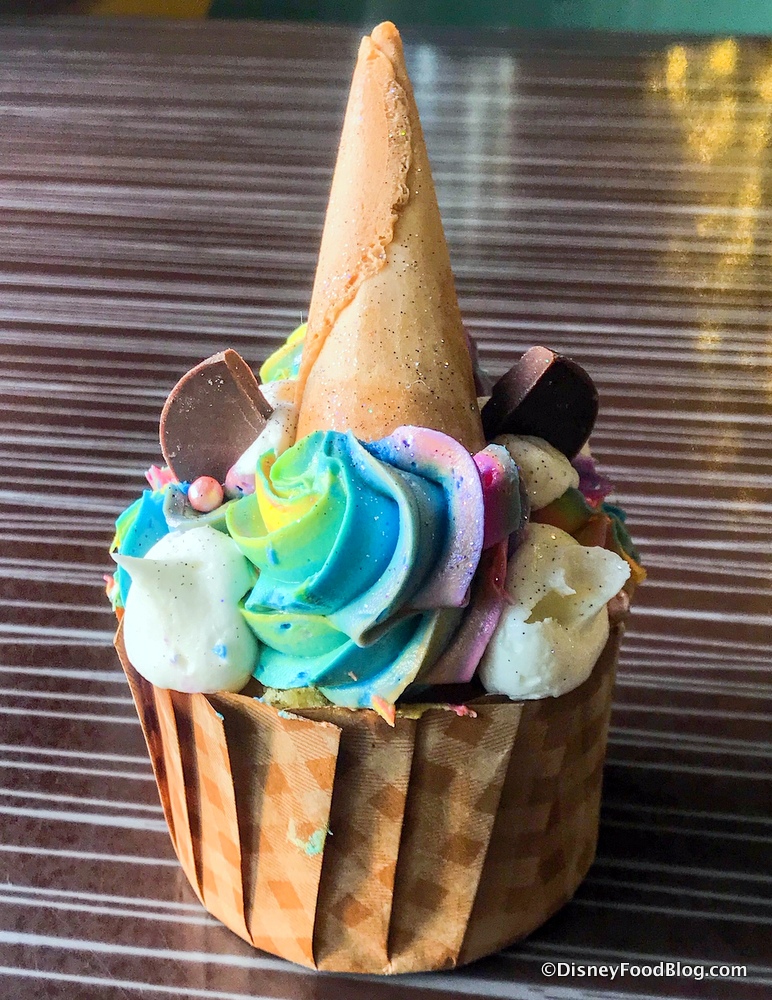 New cupcake alert!!! Over at All Star Music Resort there’s a Unicorn Cupcake (I know, I know, been there, done that) — but with a TWIST!