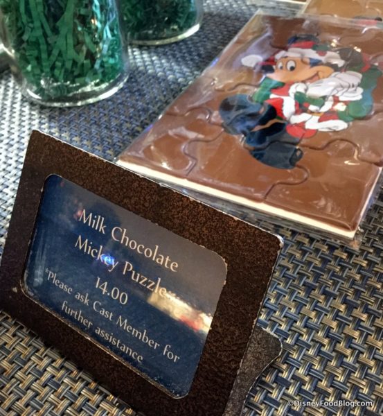 Also available for the season is a Milk Chocolate Mickey Puzzle, which could make a cute socking stuffer (unless you can’t resist temptation and dig into the chocolate a bit too early 😉 ).
