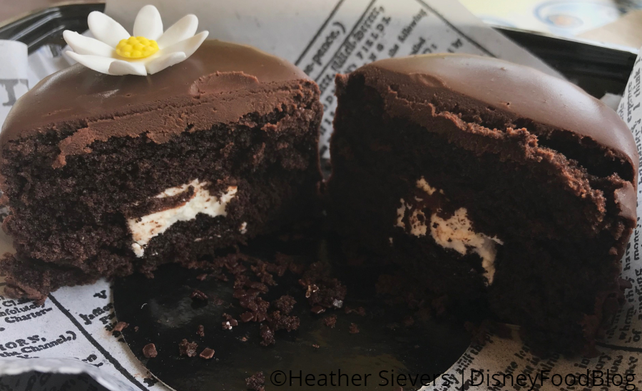 If you prefer buttercream and think frosting is the best part of a cake, you might be disappointed to discover that the only frosting in sight here is a small amount of vanilla buttercream in the center of the cake. It doesn’t add much flavor, but the hit of sweetness is appreciated.