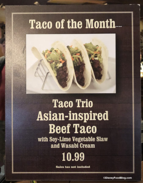 The Taco of the Month for December at Pecos Bill Tall Tale Inn and Cafe is Asian-inspired Beef with soy-lime veggie slaw and wasabi cream.