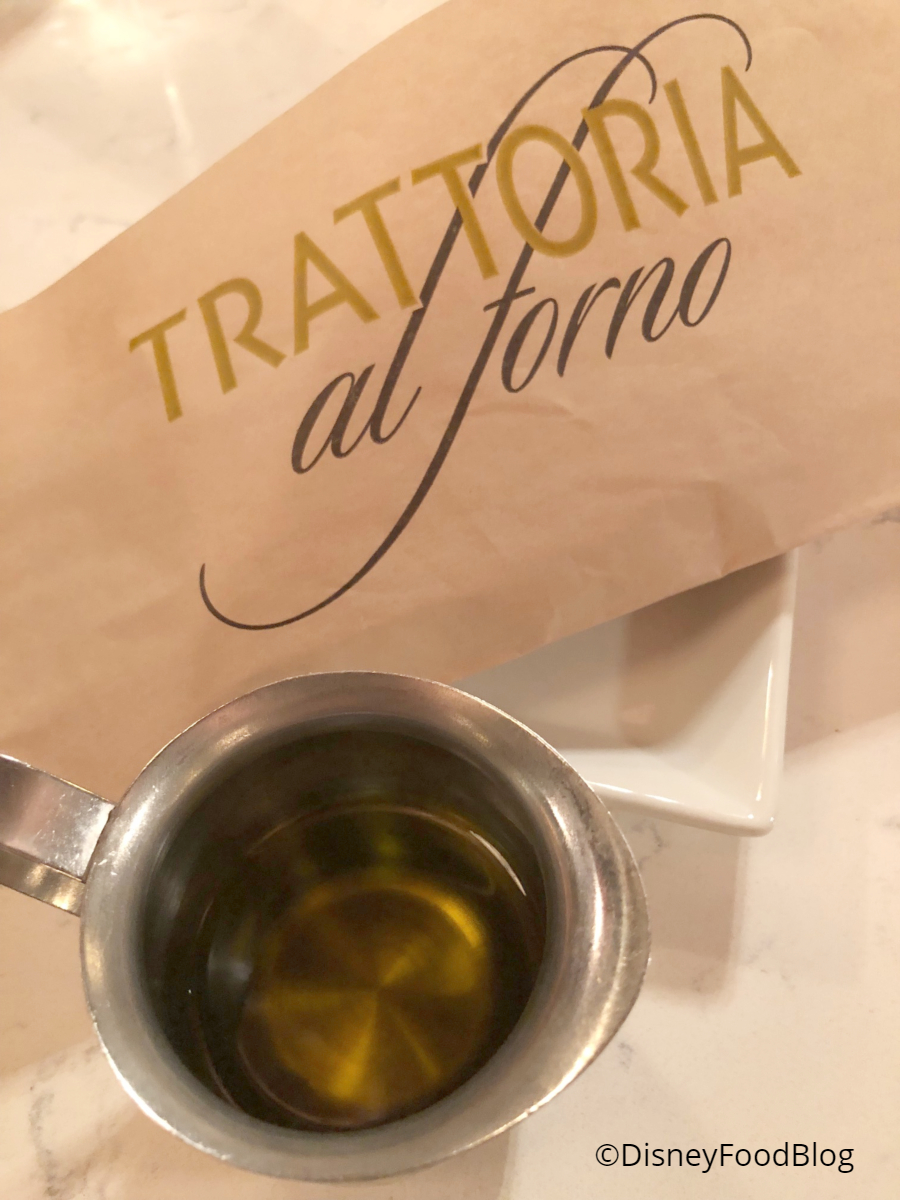 Dinner at Trattoria al Forno starts with complimentary Ciabatta Bread that’s served with Tuscan Olive Oil.
