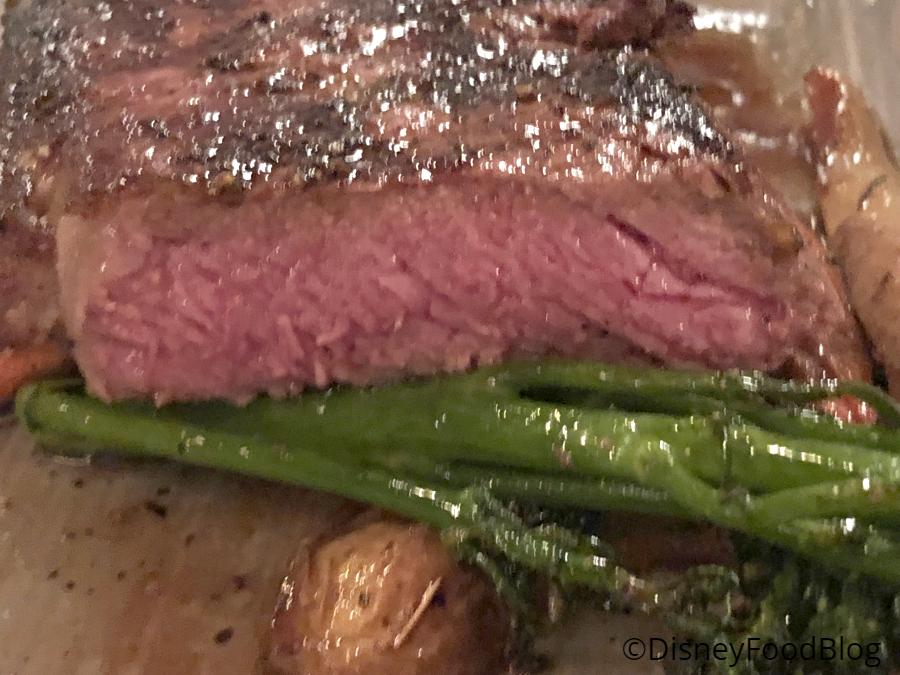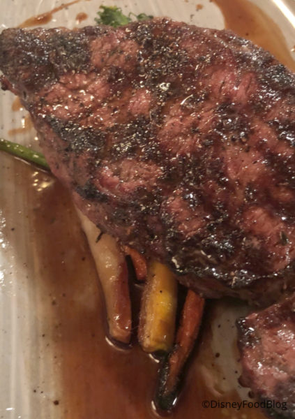 First up for entrees was Oak-Grilled Strip Steak served with Fire-Roasted Potatoes, Seasonal Vegetables, and Herb-Scented Beef Butter. On my visit, the seasonal vegetables included broccolini and carrots.