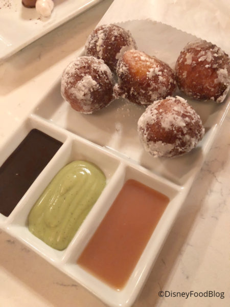 I wanted to give the desserts here another try. On our first visit, we found them to be lacking, which is disappointing when you’re finishing out an otherwise terrific meal. First up were Zeppoli — essentially Italian doughnuts — served with three dipping sauces (dark chocolate ganache, pistachio cream, and caramel). These were decent, and I appreciated having multiple sauces to mix and match. The doughnuts were a little dense, so you might consider sharing this one.