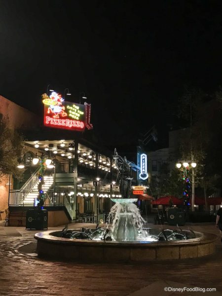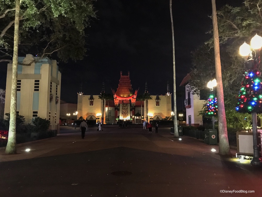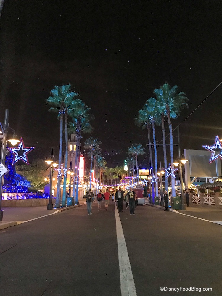 Sunset Seasons Greetings – complete with faux snowfall! – played throughout the night on Sunset Boulevard. Since Sunset Boulevard can sometimes get a bit crowded with guests during normal evening park hours, it was magical to be able to experience this show on a practically empty street multiple times throughout the night.