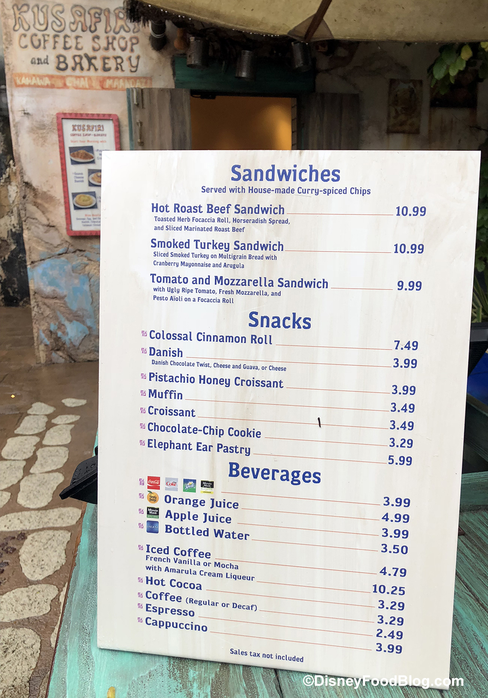 They have been also busy at Kusafiri Coffee Shop and Bakery. We tried their new breakfast items: a Pistachio Honey Croissant (also available at Creature Comforts and other in-park Starbucks locations), a Guava Cheese Danish, the Spinach and Feta Quiche, and Sausage, Egg and Cheddar Biscuit. Read our review here!