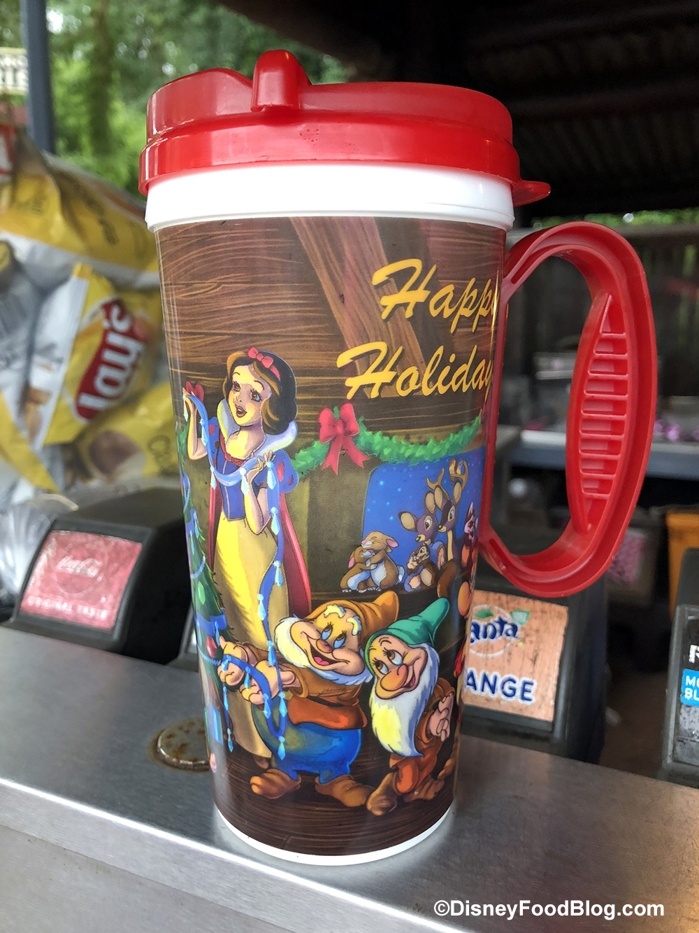 Remember the non-refillable holiday mugs which arrived in the Magic Kingdom a few weeks ago? Well, now there is an equally adorable holiday mug featuring Snow White and the Seven Dwarfs at Mahindi and Cornivores in Dinoland, USA!