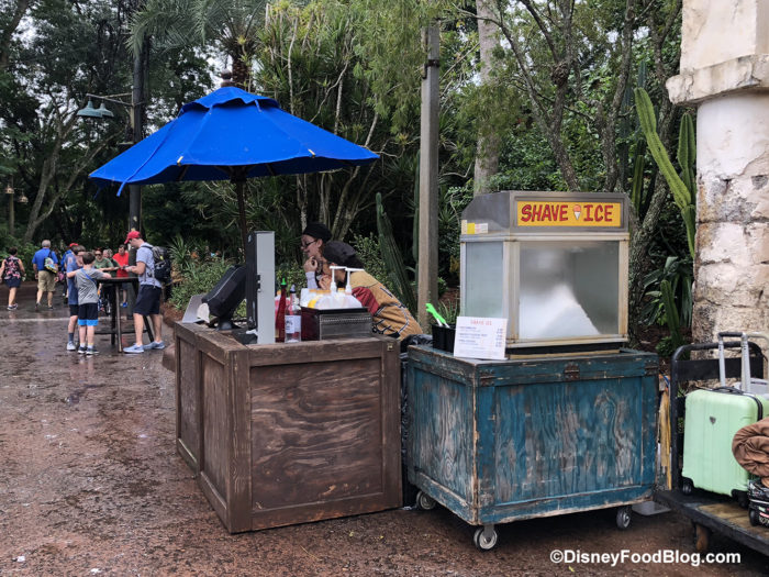The wandering Shave Ice Cart has another new home! We spotted it outside of Harambe Market on the way towards Asia on our last visit.