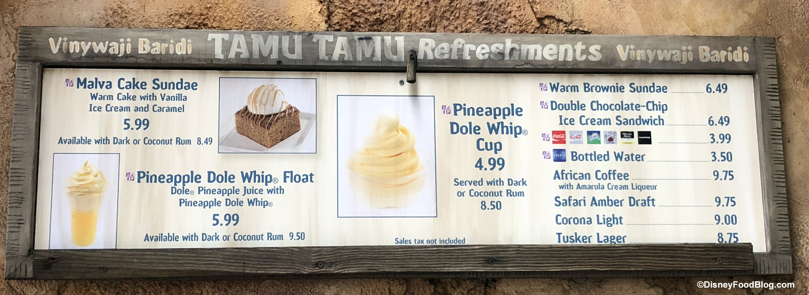 Tamu Tamu Refreshments has made some spirited additions! You can now add Dark or Coconut Rum to your Malva Cake, or you can add Rum to your Dole Whip Float. Yep, they’ve also added Dole Whip Floats to their menu as well as a Warm Brownie Sundae. To make room for these new treats the Mickey Ice Cream Sundae has been removed from the menu.