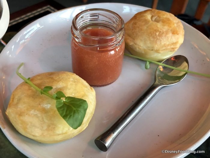 The chicken pies with black truffle have a ton of flavor, and are also served with stone fruit preserve to add some sweet to the savory goodness, if you like.