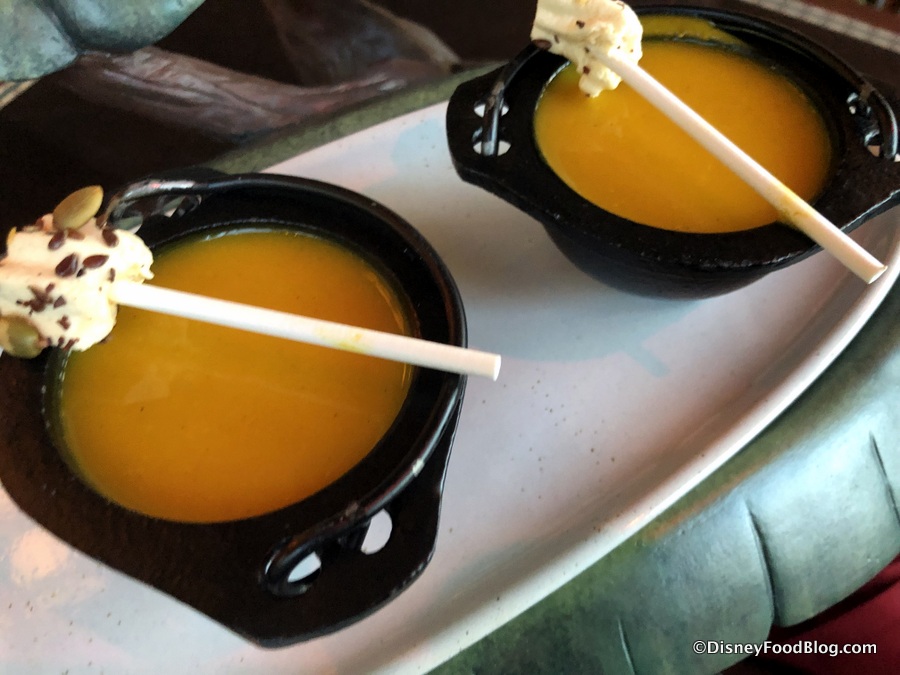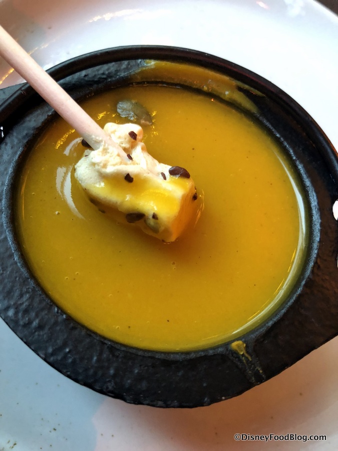 The Winter Squash Bisque is complete with a marshmallow lollipop and a bit of granola. And LOOK!