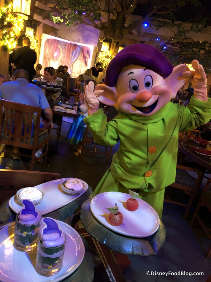 Making its debut this evening, Artist Point now presents a character dinner featuring friends — and one foe! — from the beloved Disney film, Snow White and the Seven Dwarfs. Snow White, Dopey, and Grumpy now meet and greet with guests throughout the prix-fixe dinner, which also presents a photo opportunity with The Queen!