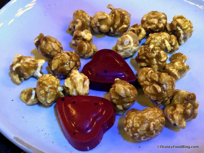 Your server will appear with a smoking box filled with crackled maple popcorn and chocolate ganache hearts. The presentation is a fun and fantastical way to end the meal.