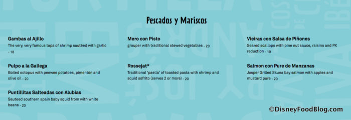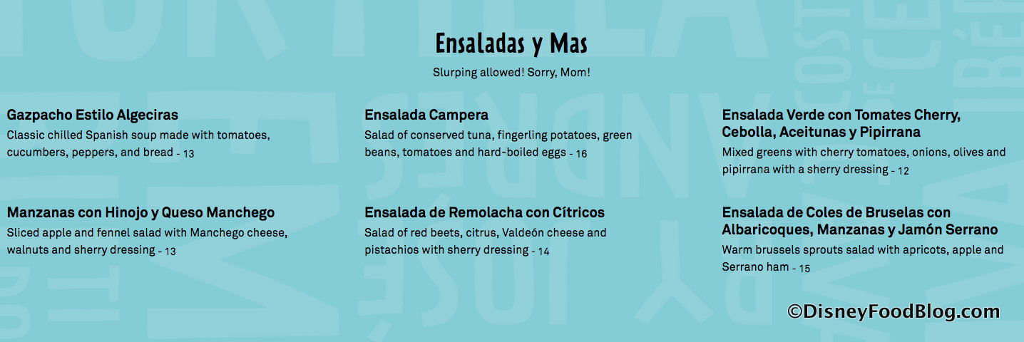 Buen Provecho translates to “enjoy your meal.” And the main menu begins with Meal Starters including cheese and meat dishes with more and varying tapas.