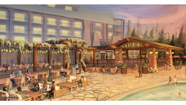 Over at the Grand Californian Resort, a new pool bar will be opening sometime in 2019! While details are still limited, we do know the new pool bar will make use of natural boulder stonework. You can also plan to see plenty of lounge and table seating.