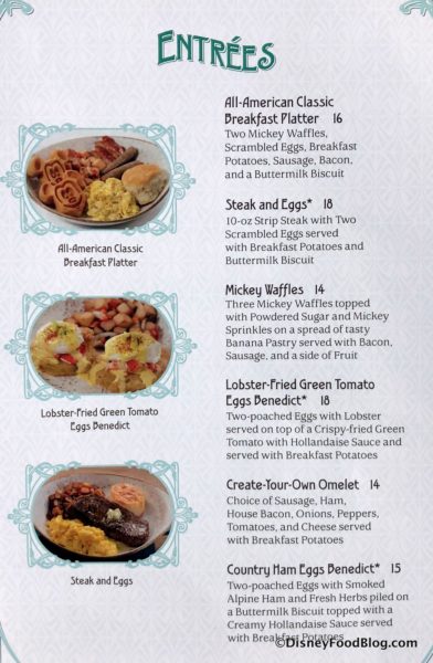 As a reminder, the breakfast offerings include traditional items such as the All-American Classic Breakfast Platter and Steak and Eggs.