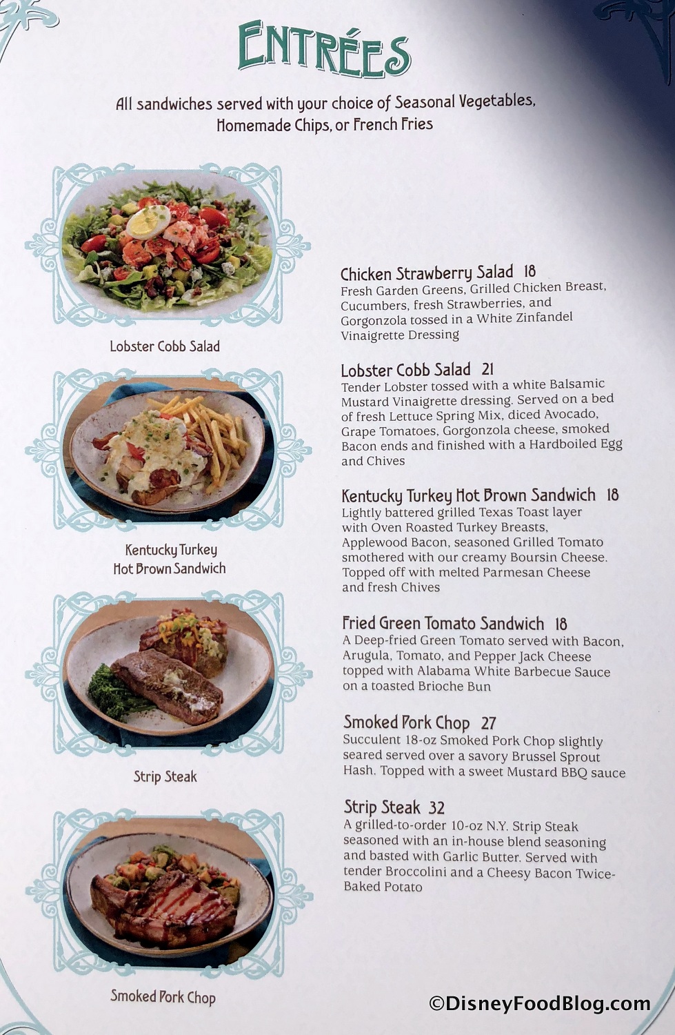 You know what, the food looks pretty good. But I just can’t get over the prices. It’s been about two years since our last Disney trip and I’ve spent so much time eating in “real” (non-Disney) restaurants on vacation, I think I’ve lost my tolerance for the price gouging.