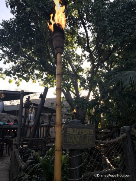 Once the sun sets, torch lights will flicker throughout the evening, adding to the romantic and mysterious Adventureland atmosphere.