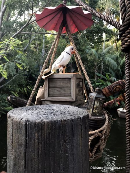 In daylight hours you’ll also be able to more easily see all of the references to both of the beloved neighboring attractions. These include Rosita the Cockatoo!