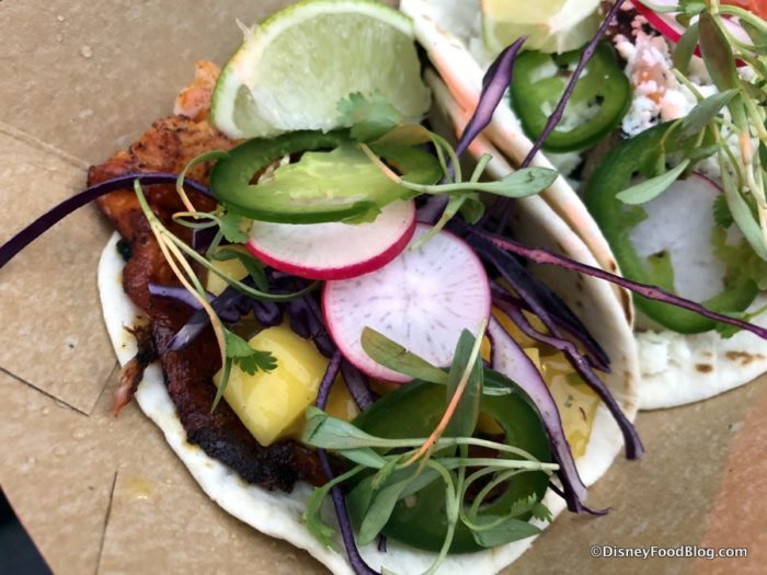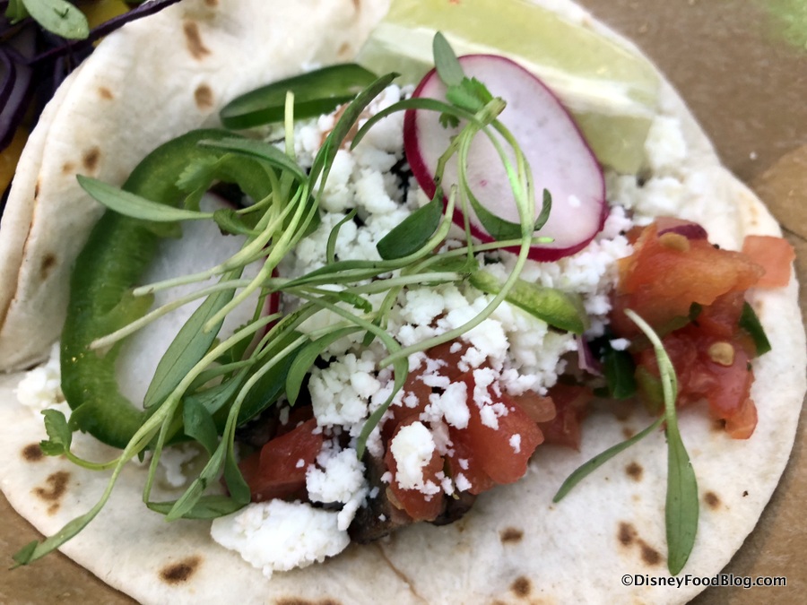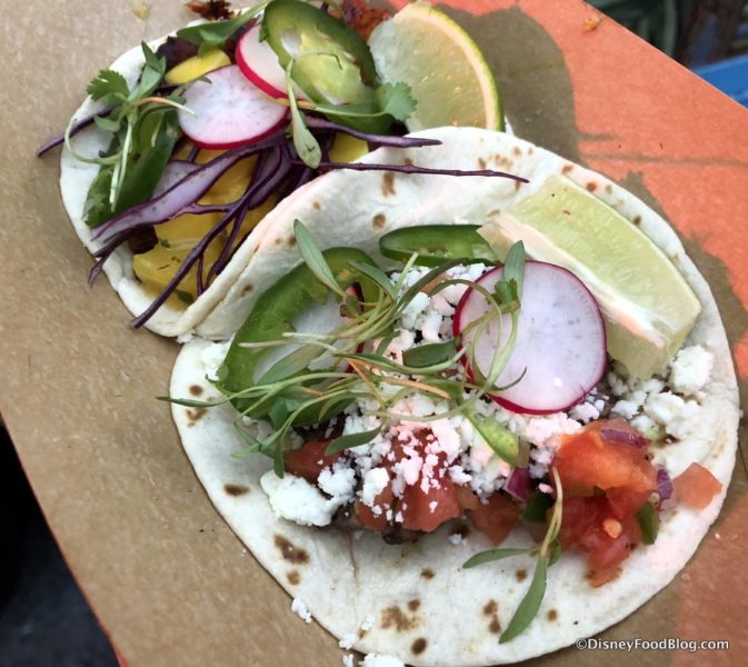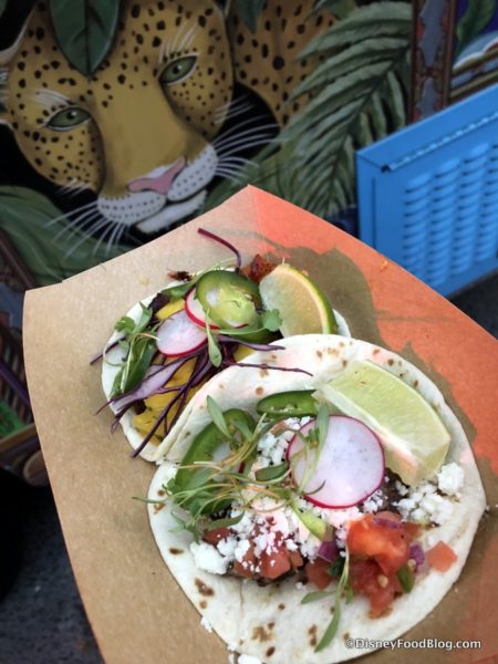 You’ll typically find Fantasy Fare Food Truck and Springs’ Street Tacos in Exposition Park on the West Side of Disney Springs (though they can move around, of course). And, by the way, you can still see the beautiful artwork on the Springs’ Street Tacos Truck from when it operated as Namaste Cafe 🙂 .
