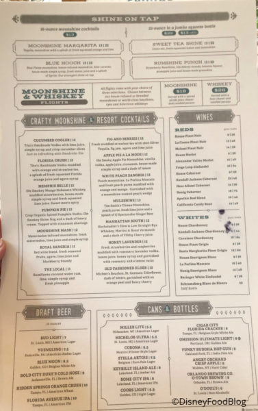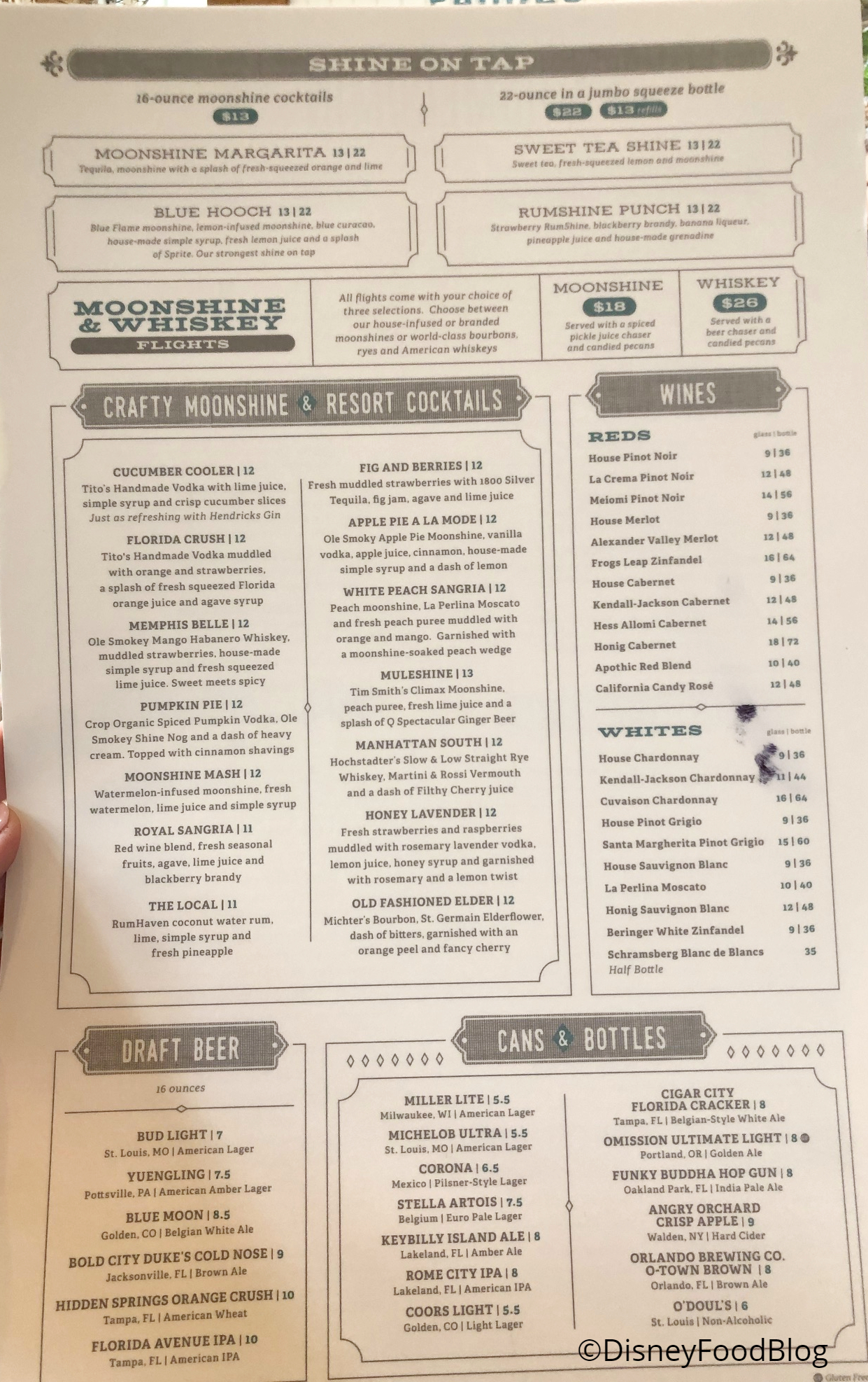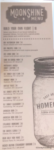 There’s also a Moonshine Menu, which embraces the restaurant’s signature category of alcohol. 😉