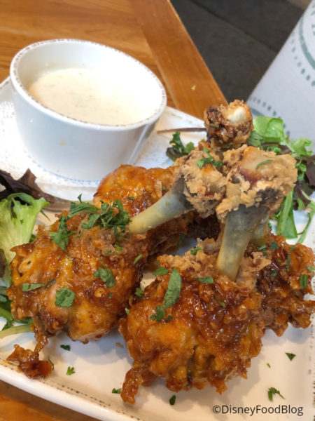 First up in Starters: Hot Legs have replaced the Ham and Cheese Biscuits (don’t worry — the Thigh High Chicken and Biscuits are SAFE!). Hot Legs are fried chicken leg ‘lollipops’ coated in the restaurant’s Fresno pepper hot sauce and served with a side of Icebox Dressing for dipping.