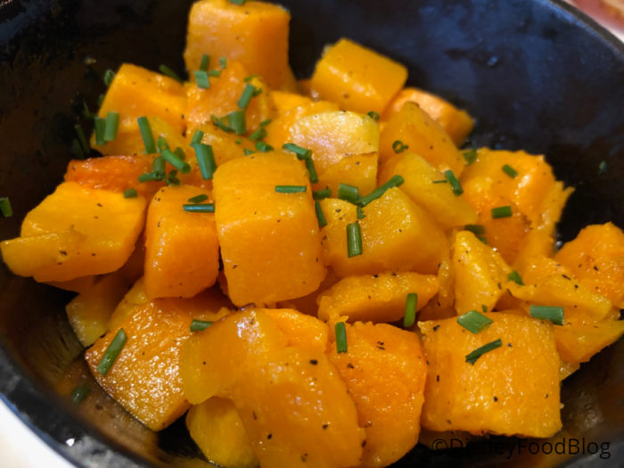 Roasted Butternut Squash replaces corn souffle, and this simple side is a vibrant addition to any meal here. It’s nothing particularly special, but it’s seasoned well, and adds a burst of color.