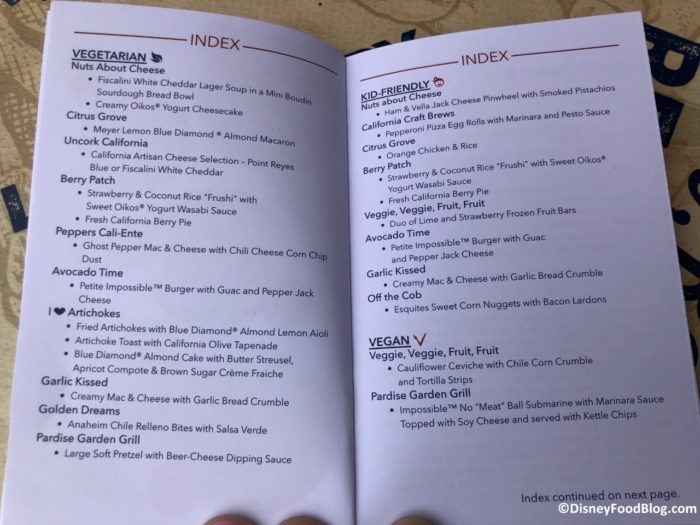 2019 Disney California Adventure Food and Wine Festival Index