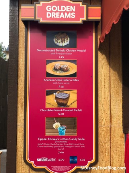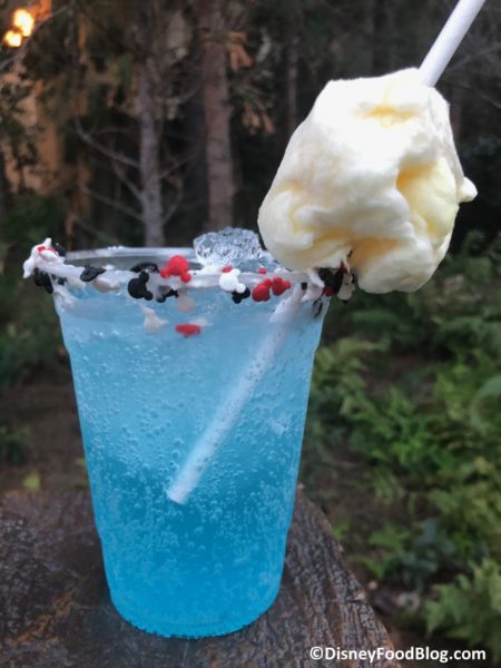 - Yippee! Mickey’s Cotton Candy Soda (non-alcoholic): Sprite, Cotton Candy Premium Syrup, Half-rimmed Butter Cream with Pineapple Cotton Candy Garnish – $7.00