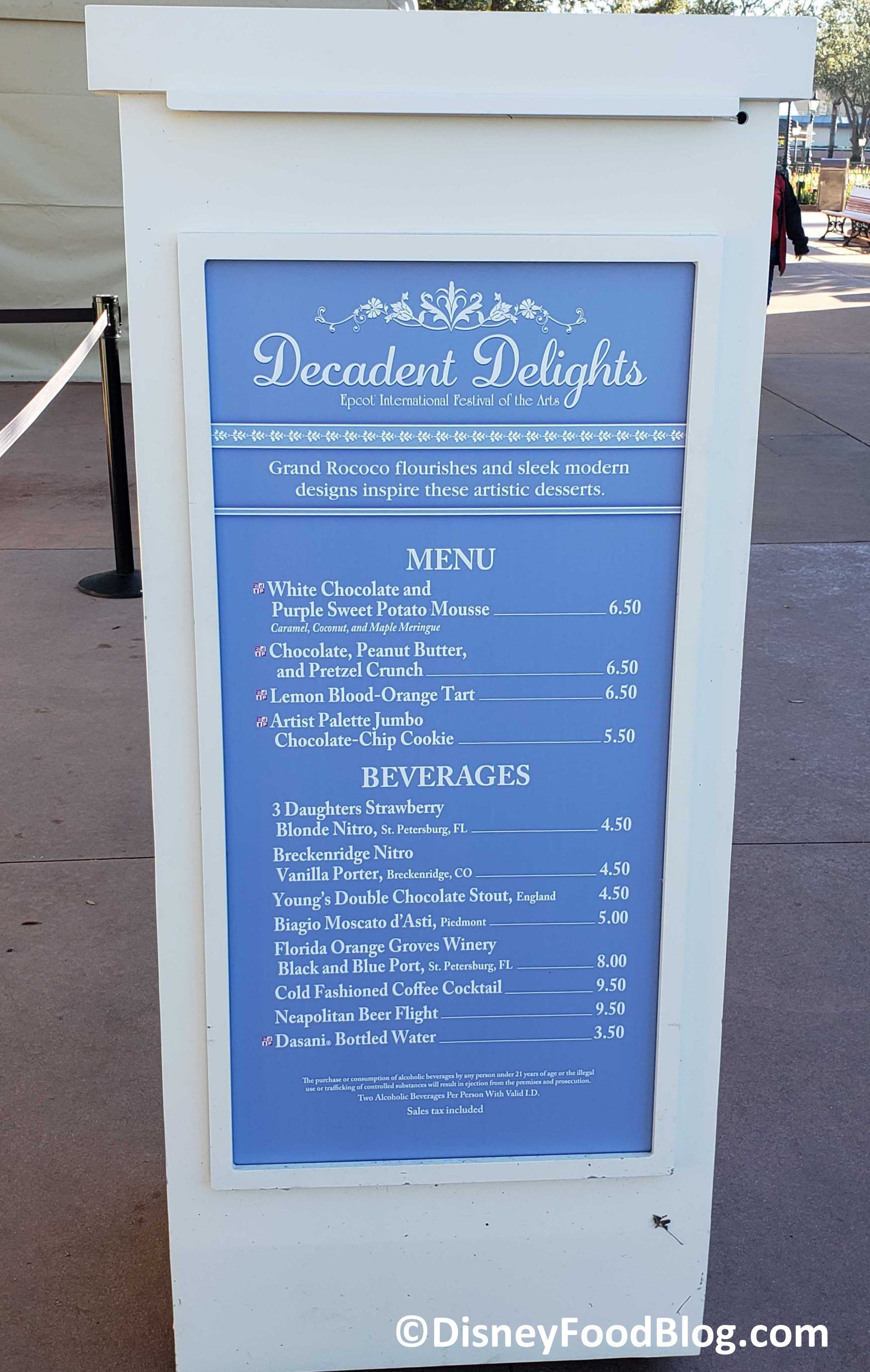 2019 Epcot Festival of the Arts Decadent Delights Food Studio Menu
