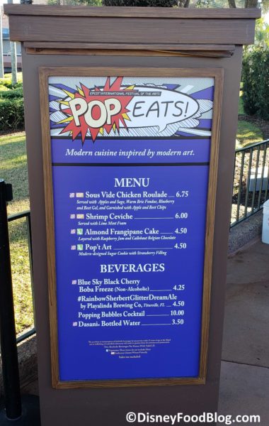 2019 Epcot Festival of the Arts Pop Eats! Menu