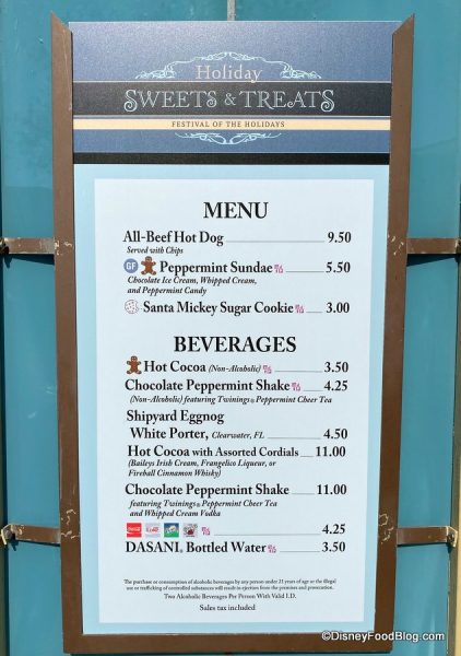 This World Showcase Promenade booth transforms into Holiday Sweet & Treats for the Festival, featuring desserts and drinks this year. And it’s also the stop to collect your Completer Cookie if you’re participating in the Holiday Cookie Stroll!