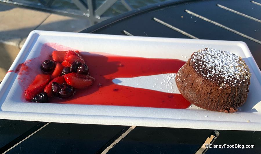 - Bacio al Cioccolato: Warm Hazelnut Chocolate Cake with Caramelized Berry Sauce — $10.00, DDP Snack Credit Eligible