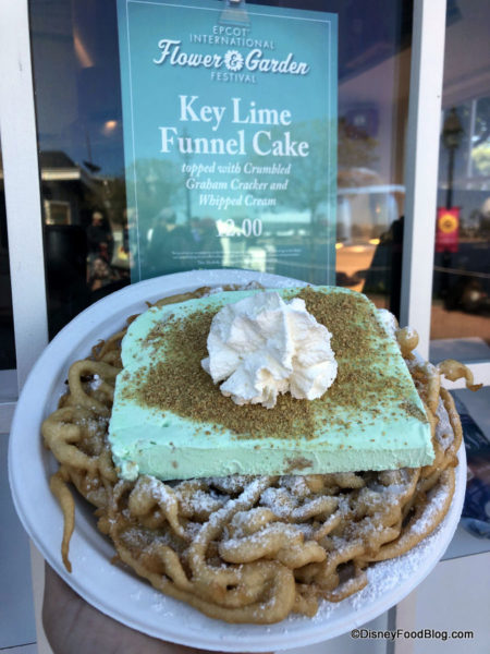 - Key Lime Funnel Cake topped with Crumbled Graham Cracker and Whipped Cream — $12.00