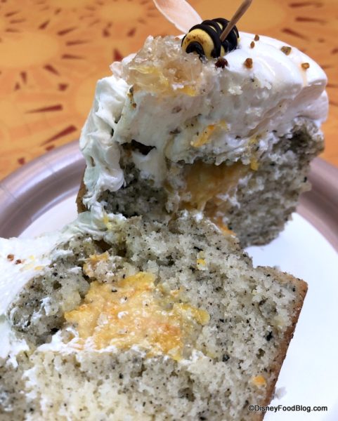 - Earl Grey Tea Cake with Orange-Honey Filling topped with Honeybell Tangelo Buttercream, Honeycomb, and Bee Pollen