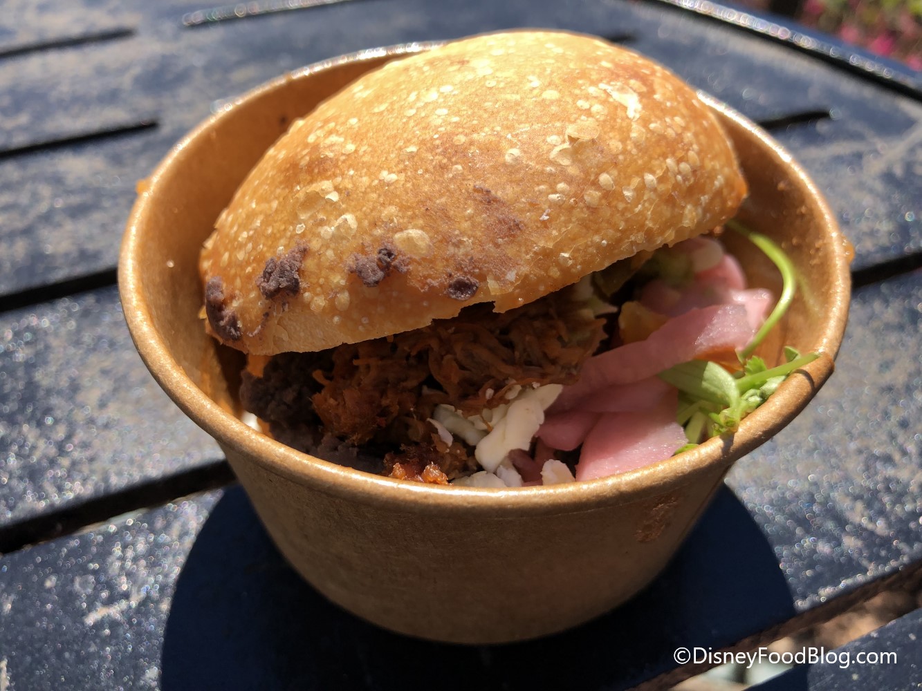 - Beef Torta: Braised Beef served on a Crispy Sourdough Roll with Queso Oaxaca, Avocado, Pickled Onions and Jalapeños in a Spicy Habanero Sauce — $6.50, DDP snack credit eligible