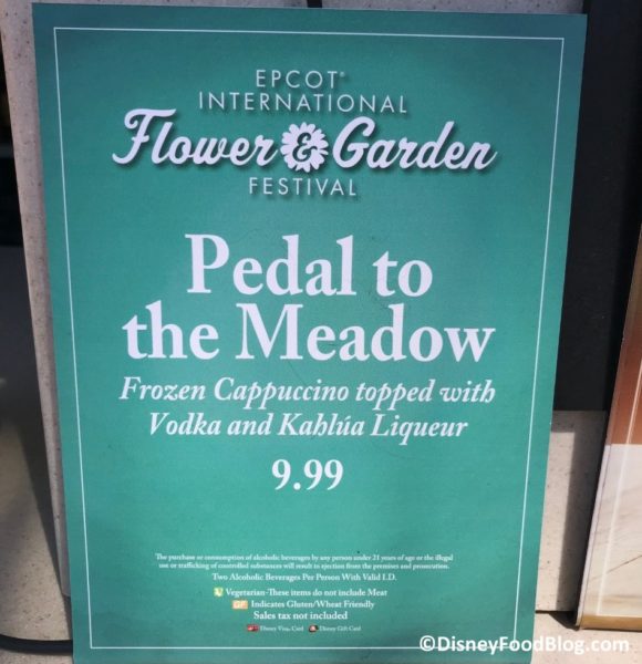 - Pedal to the Meadow: Frozen Cappuccino topped with Vodka and Kahlúa Liqueur – $9.99