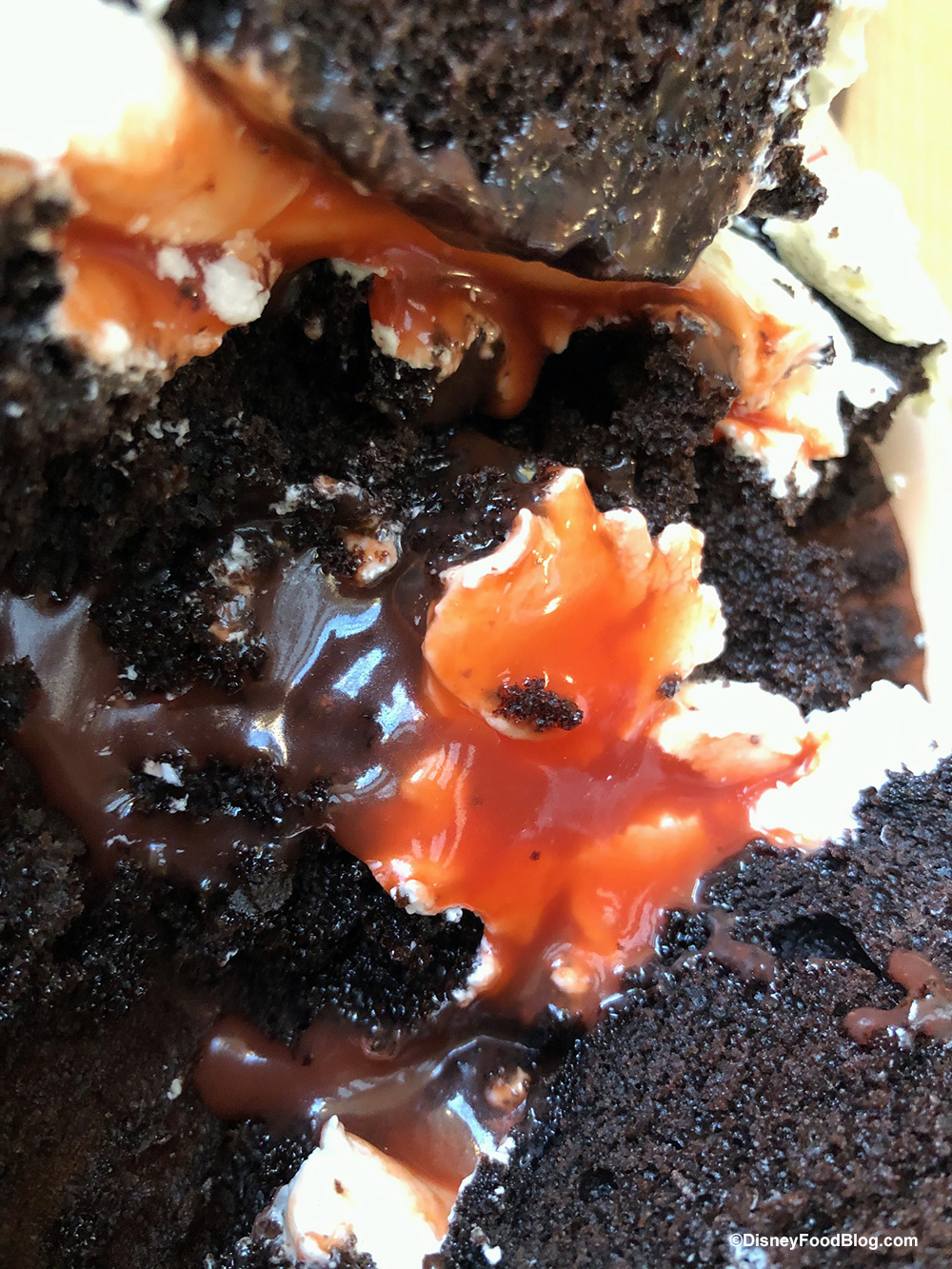 The Firework starts out with a Chocolate Cupcake which is perfectly normal…but look at that filling! Red Hot Candy Caramel filling! Its all topped with vanilla buttercream icing. You know we had to try this out to see if these flavors really worked together — or at all.