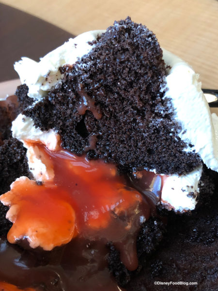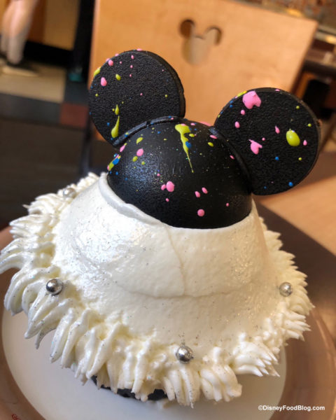 The first thing that attracted us to this cupcake was its chocolate paint splattered Mickey Hat! Then the name drew our attention followed by the description of the flavors.