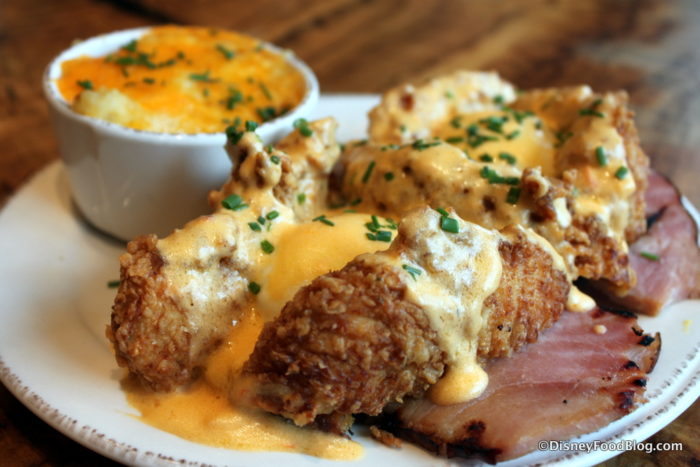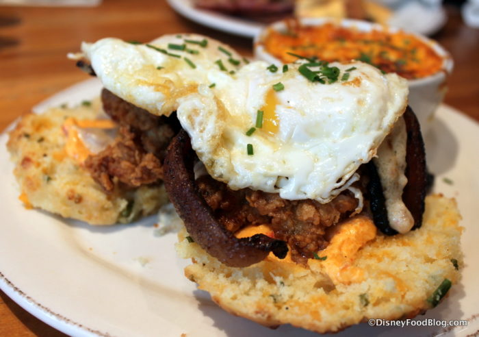 We were very excited about the Hallelujah Biscuit ($22): an open-faced Cheddar Drop Biscuit, pimento cheese, Chef Art’s famous fried chicken, pecan-smoked bacon, and sawmill gravy.