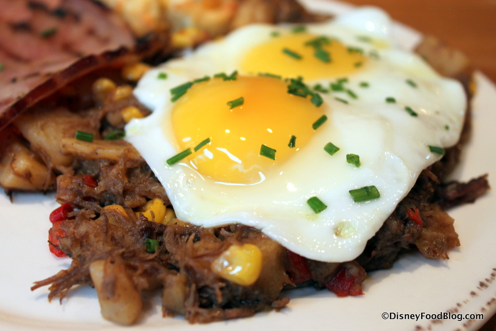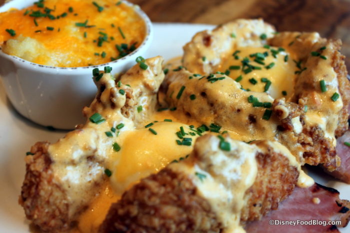 With most of the Rise and Shine Brunch menu selections at Chef Art Smith’s Homecomin’, you get to choose a side! At the time of our visit, the available brunch sides included Bradley’s Grits, Potato Gratin Mash, Seasonal Fruit, Pecan-Smoked Bacon, and Griddled Country Ham.
