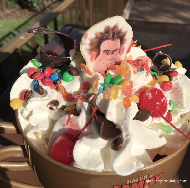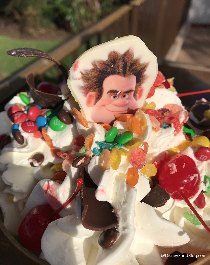 From here on, though? It’s all about Vanellope’s best buddy, Wreck It Ralph, who you’ll find not only on the top of the sundae in a chocolate tribute…